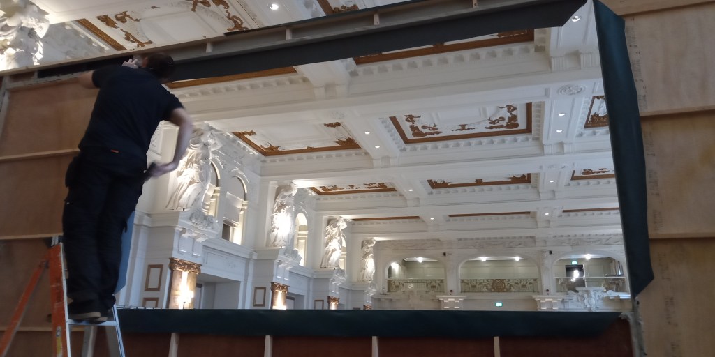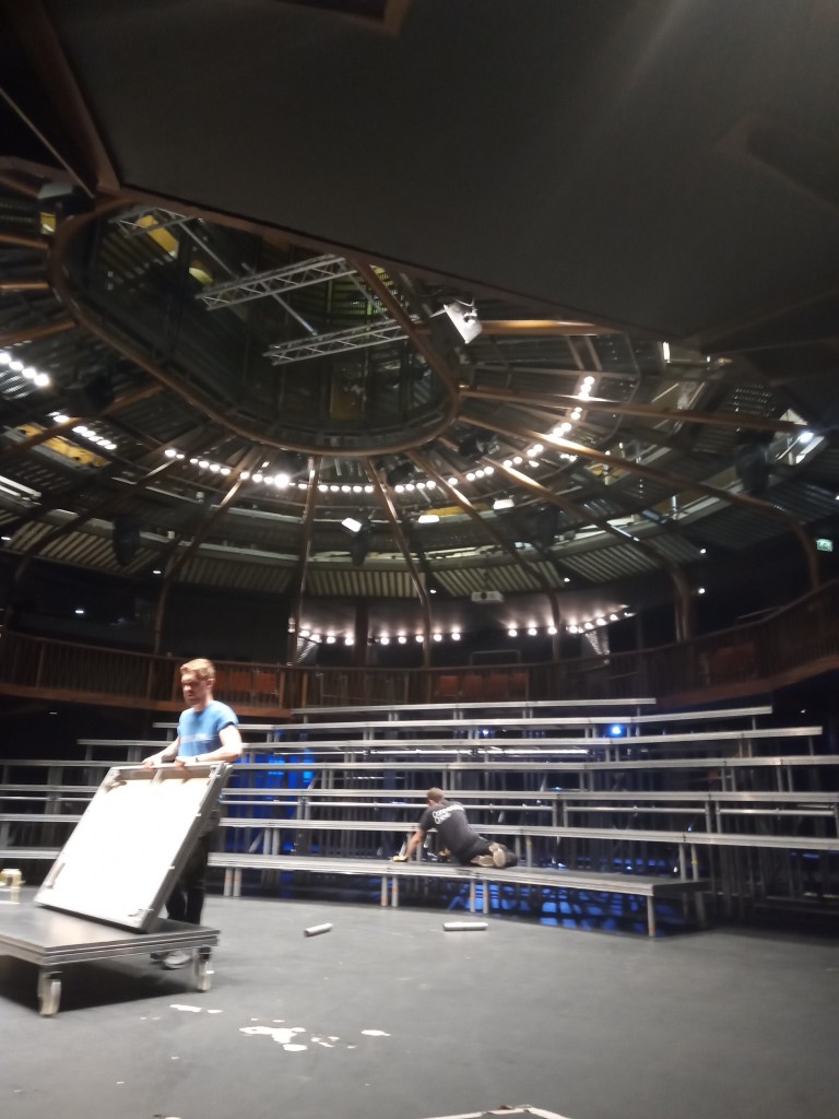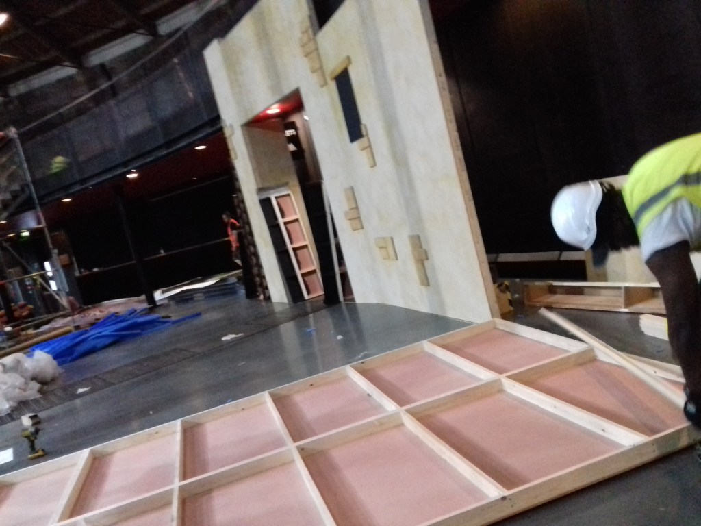 I certainly learned a lot about efficiency and what it means to keep going against the odds. With a company that sees and supports the individual and aims at handpicking the crew for each and every job, I did see myself (amongst other jobs) working for the art department in film (dismantling and reverse flat-packing an office set) and more often then not with stage related jobs. Got quite fond of working with wood and powertools too – not the chippy quite, yet.