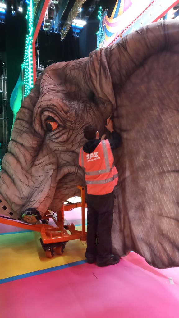 To see the set coming together …well and marching a panto zoo down London roads, helping to attach mega ears to the oversized elephant (the list goes on)… is one of my favourite crewing jobs to date, I probably never forget.