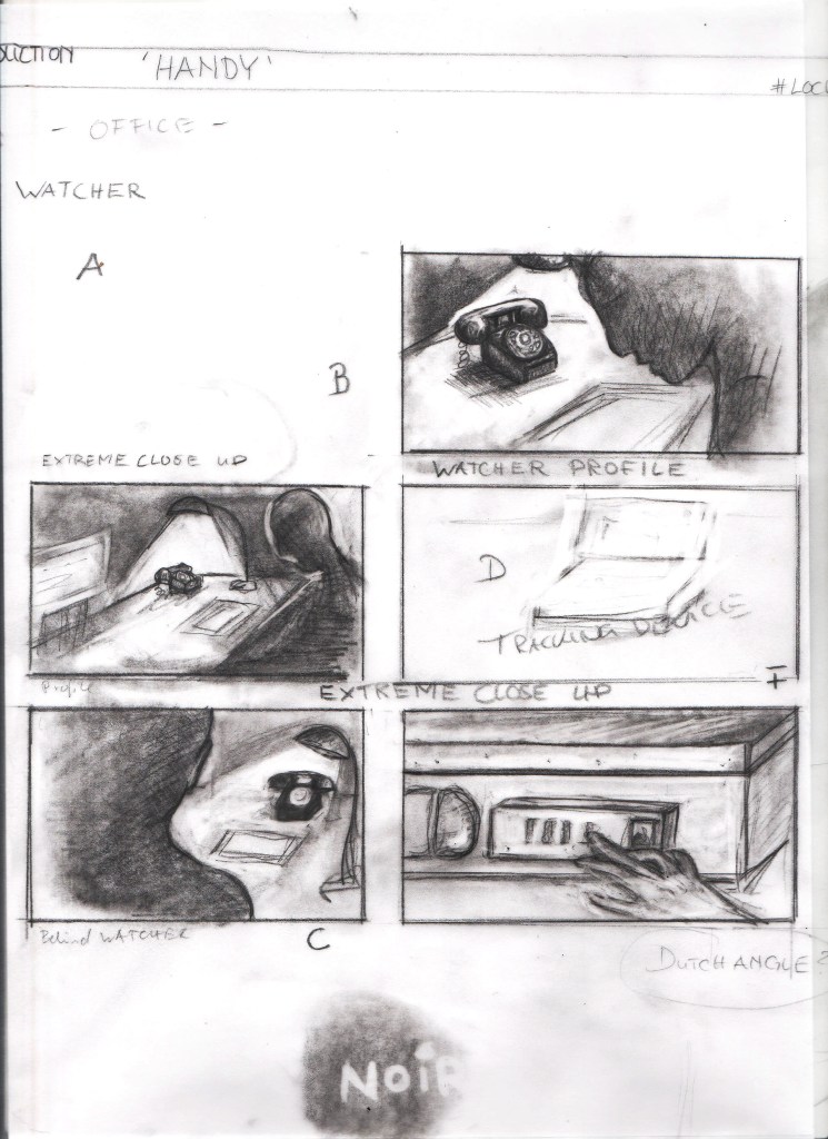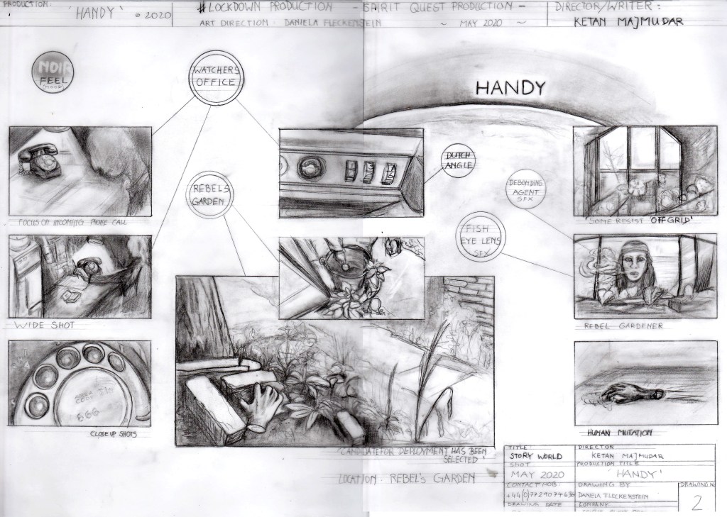 Settling mood, feel – colour grading – and generally exploring the story world: this ‘alternative reality’ was set in. I got to unpick the script (once it was written) and tried my hand on storyboarding. The in depth feedback I got from Ket, helped me to understand further the ability and communications necessary and found in the art department.