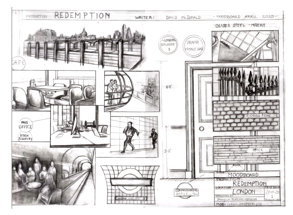Imagining the story world and all its textures, shapes and colours; is of great interest to me and good fun. With my imagination fired up, I am looking for contrasts in the story and this surely can be found in this script. From modern ‘oldy wordly’, to the lofty hights of London modern contemporary Offices, in glass and steel, down to good old brick & mortar, cobbled streets and other iconic London locations and references. Not without a nod to this cities underground.