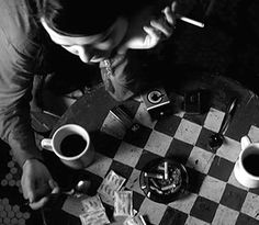 … that would have been enough to entice me – but this short “SMOKING KILLS” was also shot in black and white enhancing surreal comedy aspects. In addition with my favourite sprinkling of film noir – yet, future-retro in mind … a mix that certainly raised my appetite to get the production design engine in motion and a mood-board created: