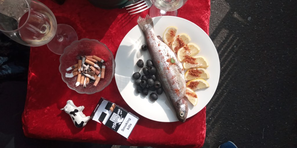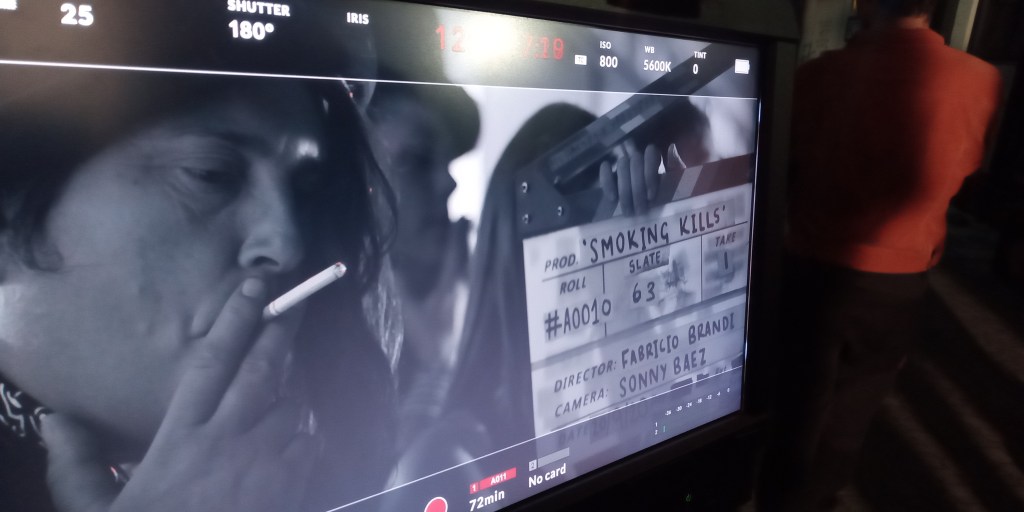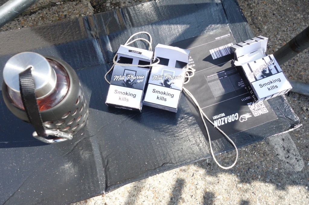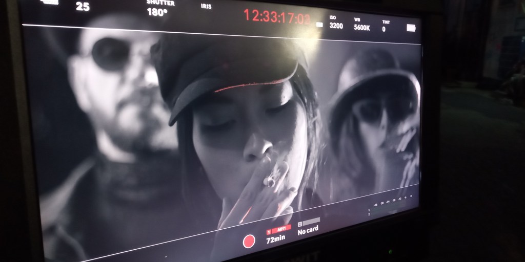 5 days in an artists warehouse compound, with all locations not to far from each other made it possible: late summer 2020 , with helpers and supporters on hand: allowed us to shoot 5 days on the trot and +2 days of preparations – from stuffing cigarettes to folding packets, labelling tins etc … the cameras started rolling: