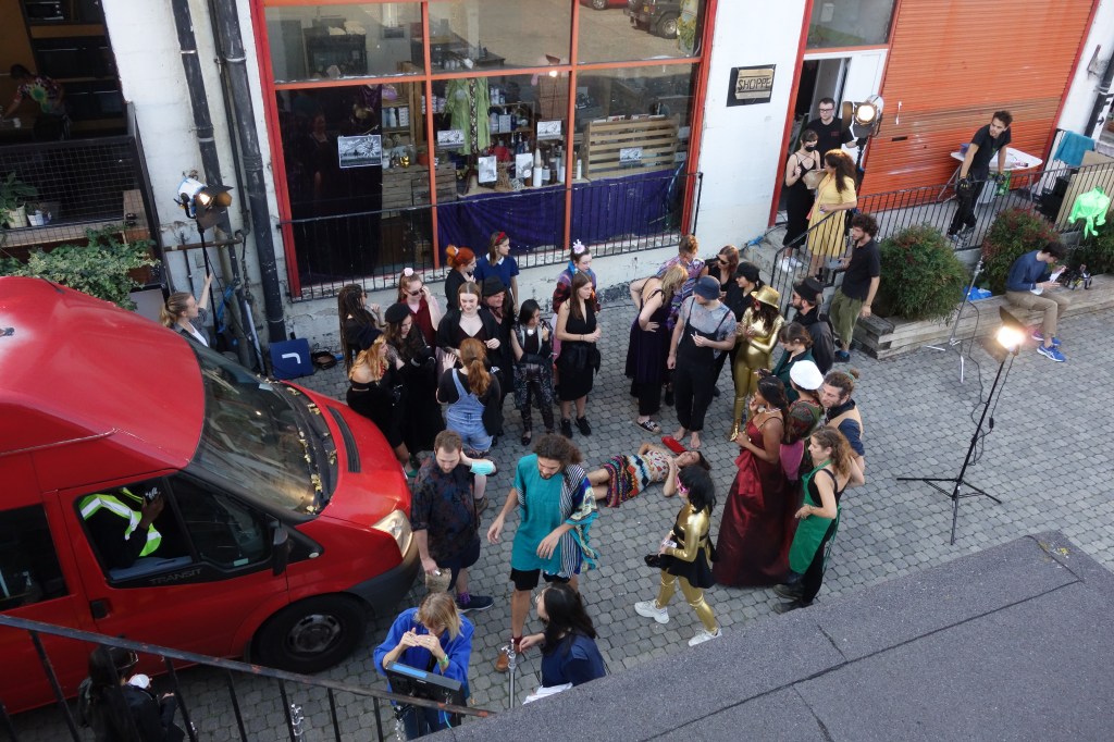 …never too far away from a hint to the sureal notions and mood flavourings, not without some additions ( and a costume designer on whatss app and in charity shops )and we got the notions infused in the visual display as intended – for the story to unfold.