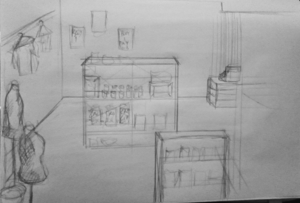 …and the designing of the story world begun. With an eye on subtext and significance: the telling of the story through objects and locations began: some sketches, conversations, assistance and good dose of effort … the world started to emerge. Good costume designer and some tests and more meetings and the day was soon to arrive …